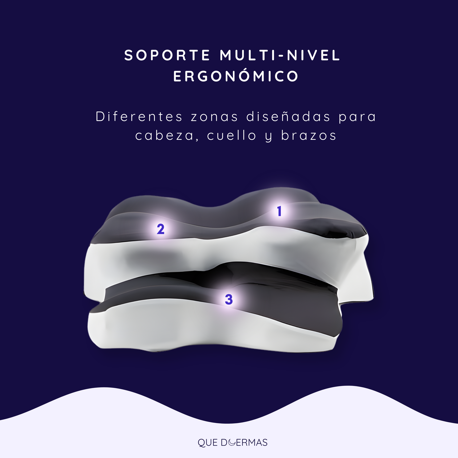 Espuma viscoelástica premium que se ajusta suavemente a tu cabeza y cuello, ofreciendo comodidad y equilibrio durante toda la noche.